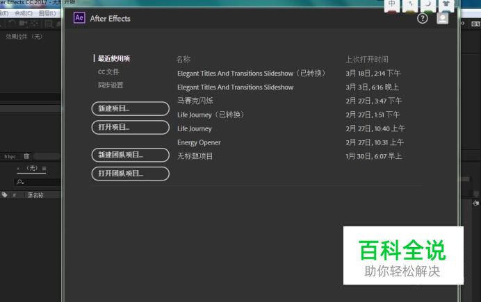 首先打开AE,选择新建或者打开项目,新建的话打开之后就加入素材,