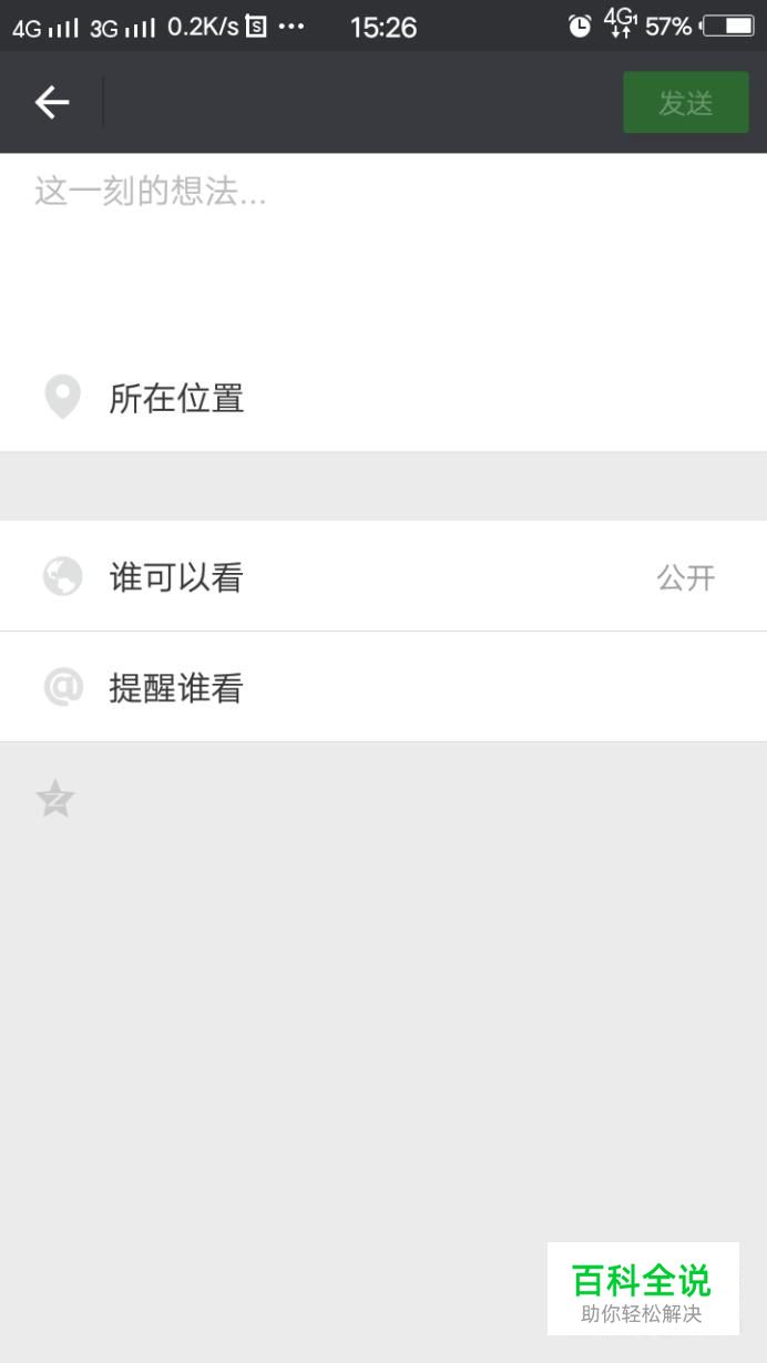 在发表朋友圈页面,编辑想发表的内容,此时默认状态为公开。