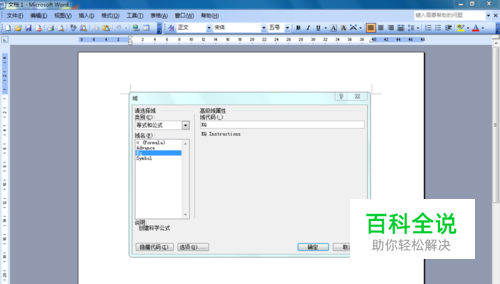 单击选择栏-等式和公式-选择Eq-单击域代码-单击选项。