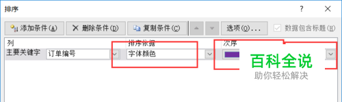 在排序依据中,选择“字体颜色”