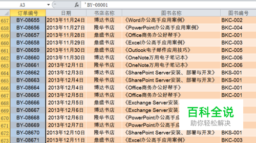 光标定位在“订单编号”列中任意一个单元格中,找到“排序和筛选”下拉列表中的“自定义排序”