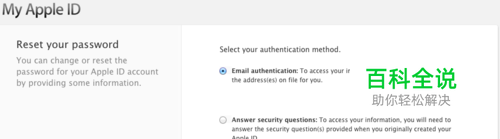 在“选择你的验证方式“下面: 点选“邮件验证”:选择这个后,系统发邮件到你的邮箱地址进行验证。(推荐此方法,方便快捷。) 或“回答安全问题”:选择这个后,你需要回答一些创建苹果ID时创建的安全问题。