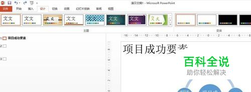 步骤2、首先要用鼠标左键点击选中现有的SmartArt图形,如果没有选中现有的SmartArt图形,在最上方菜单栏中不会出现SMARTART工具专有的菜单,这里的”设计”菜单是用来更改幻灯片的主题风格的,不能实现我们的目的;