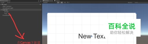 首先,新建Canvas,在Canvas下新建Image作为背景,新建Text用来制作动画。