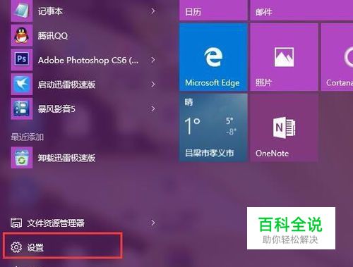 首先,请大家点击Win10系统中的开始菜单,在弹出的开始菜单中选择“ 设置”按钮,进入Win10系统设置应用主页面。