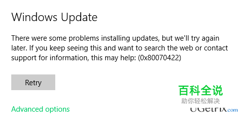 安装更新时出现了一些问题,但我们稍后再试。如果您继续看到此信息并想搜索网页或联系支持部门以获取信息,则可能会有所帮助:(0x80070422) 虽然最初,这个错误可能看起来像是Windows的一个小故障,但实际上,所有的Windows Update错误都应该视为一个严重的问题。如果Windows操作系统缺少更新,它可能会变得脆弱,缺乏新功能,开始提供新的错误弹出窗口,随机冻结等等。因此,不要推迟Windows Update错误0x80070422修复并立即采取所需的操作。