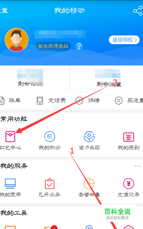 然后用移动手机号登录你的手机营业厅 点击右下角【我的】找到【红包中心】