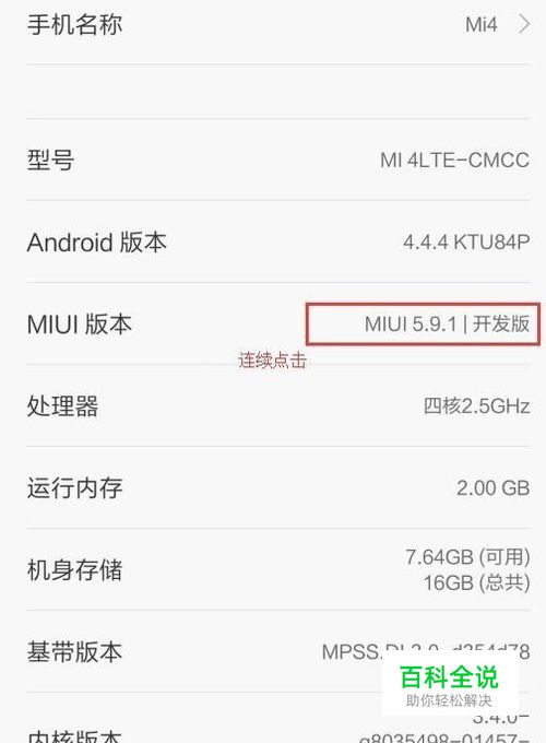 在 关于手机 界面下,读者可以连续点击系统版本号选项,知道下面提醒 你已经处于开发者选项 为止。如下图所示操作: