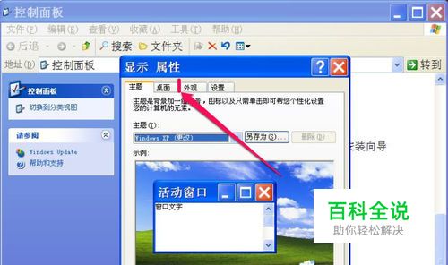 设置好后,再进入控制面板,打开“显示”这一项,这一回,就在显示属性窗口看到了“屏幕保护程序”这一项了。