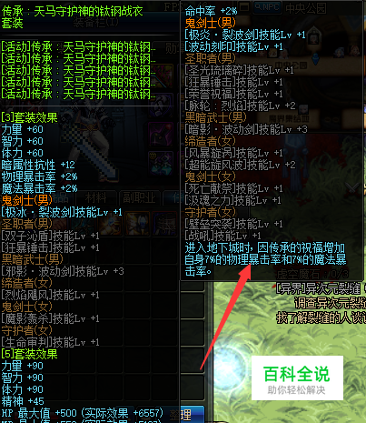 穿一套传承装备也是很拉风的,而且套装有很多属性加成,80级的传承套装进入地下城会增加7%的物理和魔法暴击率。