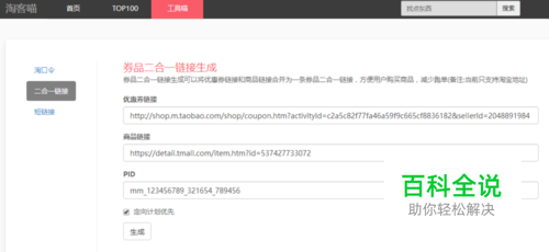 生成淘口令、券品二合一链接、短链接的方法
