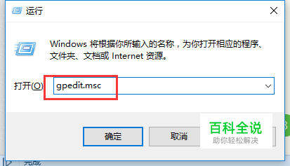 打开“运行”窗口,输入“gpedit.msc”并点击“确定”按钮即可打开“组策略编辑”窗口。