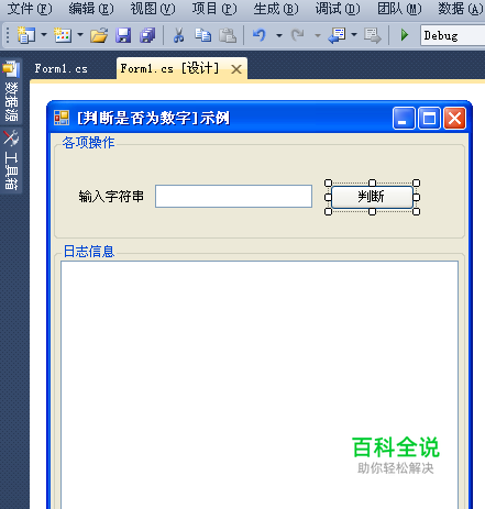 在新程序界面空白窗口上放置合适的控件:包括, 显示操作流程的textbox控件; 添加1个按钮控件【判断】; 给用户输入的textbox控件。