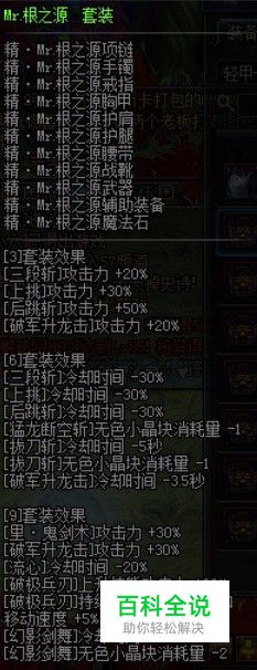 top2: 二期异界套 - Mr.根之源 只推荐带6件,减少拔刀斩5秒,还有就是免去拔刀斩的无色,满级的拔刀斩是28级(12.2秒),这样7秒1拔刀。 首饰推荐悲鸣3首饰(增加移动速度)