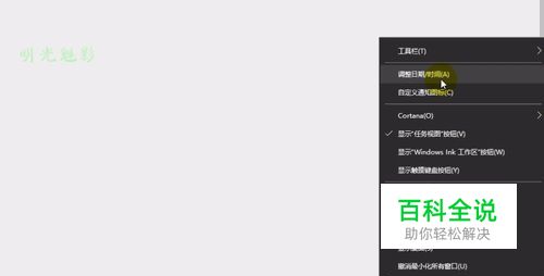 在右下角时间上点击鼠标右键,选择设置时间。如图所示。