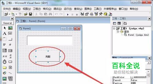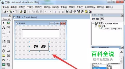 打开VB软件,在编辑界面中插入一个CommandButton按钮,并设置名称为判断。