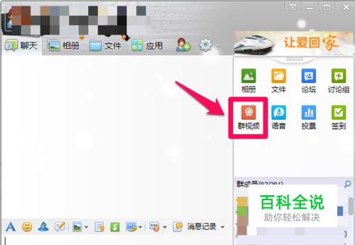 打开以后我们找到群界面右侧的【群视频】功能点击进入。