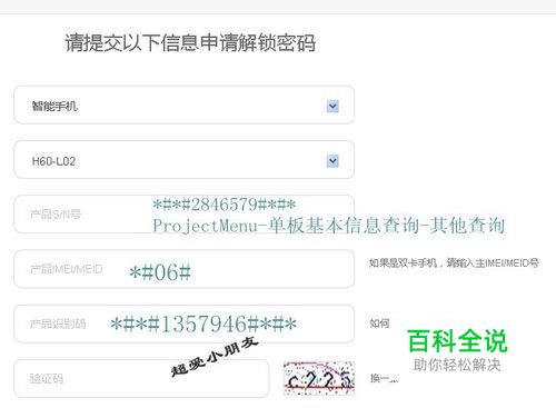 下一步会让选择产品类型(统一选择智能手机)和产品型号,然后输入SN码、IMEI码和产品识别码,具体查询方法见后面。全部填写完毕确认无误后,输入验证码提交,过段时间会看到解锁码。