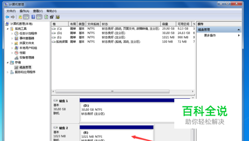 开始菜单-右键计算机(桌面计算机右键与开始菜单-右键计算机 是一样的) -点击管理-选择存储-磁盘管理