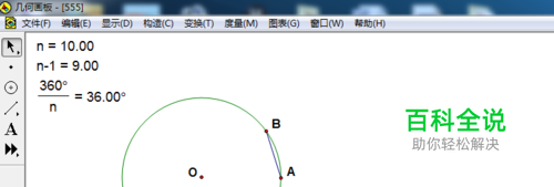 虽然几何画板自定义工具有正多边形工具,但是它只限于几个特殊的正多边形,边数分别是3,4,5,6,8,10,12,17。这里我教大家用迭代法画圆内接正多边形,边数任意,不受限制。