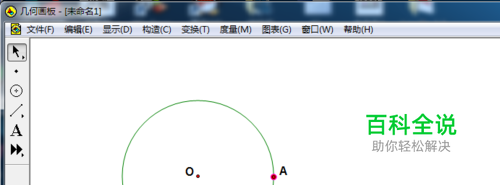 为了便于讲解,我们以画圆内接正十边形为例。先画一个圆,在圆O的圆周上画一个点A。
