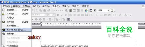 第一步:打开加密文档,选另存为WEB页(图1) 之后会出现如图2的废话,不管它,点继续。