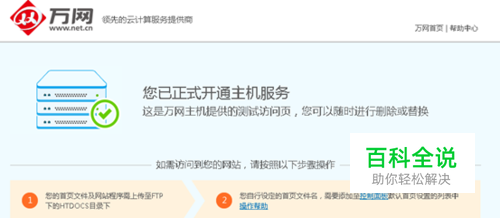 免费虚拟主机访问域名会提示一个测试页面,需要备案解析之后才能显示页面