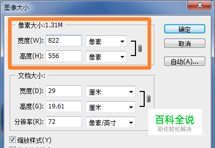 点击后会打开一个对话框,在对话框中会显示当前图片的高度和宽度像素值。