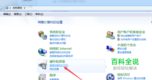 从打开的Windows“控制面板“界面中,点击’设备和打印机”项进入,之后点击“添加打印机”按钮,如图所示: