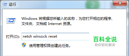 首先我们按下WIN+R呼出运行菜单,然后输入:netsh winsock reset 重置当前网络