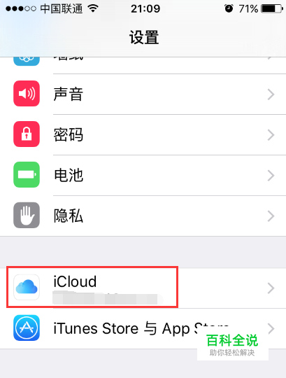 点击【设置】功能选项进入到苹果手机设置界面,下翻界面可以看到icloud选项,要想使用icloud功能,必须保证已登陆apple id账号,如下图所示。