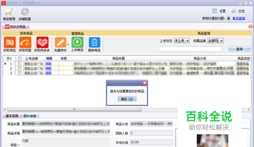 如果直接点击修改商品的话,就会出现请先勾选需要修改的商品。所以要记得打勾