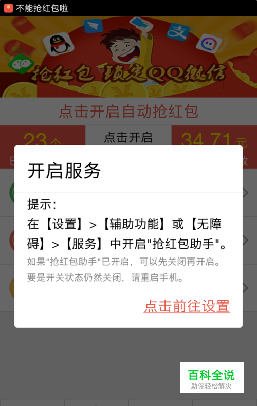 在辅助功能中,选择抢红包助手并将开关打开,点击确认
