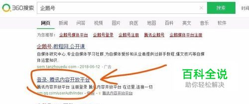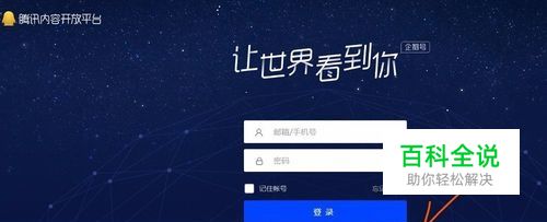 在电脑上的浏览器输入企鹅号,看到如图所示的页面,点击箭头所指的腾讯内容开放平台