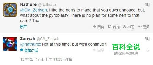 炉石传说此次针对法师的削弱得到了许多玩家的一致好评,不过暴雪对自己亲闺女的削弱行动似乎并没有停止,近期官方通过推特再次显示即将要对炎爆动手的意向,我们一起密切关注 1.法爷遭砍 蓝贴:竞技场问题以及即将到来的改动 来自玻璃渣官方的蓝贴消息。 “在本次的补丁更新中,我们发现一些玩家存在无法开始新一轮竞技场的BUG。这个特殊的BUG无法通过在线修正来解决,必须通过一个新补丁才可以。好消息是,我们已经准备好一个新的补丁,好让这些问题得以解决! 同时需要强调的是,我们没有计划在现在到公开beta测试之间加入太多的补丁,所以我们决定利用这次机会对使用冻结机制的法师卡牌进行若干改动。 我们在最近的几个月中一直对冻结机制保持密切关注,而且我们决定在这个补丁中对利用冻结机制的某些卡牌进行一些修改:冰锥术、暴风雪和冰霜新星。这些卡牌的法力消耗将会提高 1 点。我们知道应对冻结机制让人头疼,而我们认为这些改动应该会让对手能够有更多的时间处理他们的随从,并且在保留冻结在多个不同类型卡组中的玩法的同时,减缓依赖控制的法师玩法的整体节奏。 和所有专家卡牌的改动一样,从补丁发布的当天开始,冰锥术和暴风雪在两周内都可以被分解为全部数量的奥术之尘。最后感谢各位玩家在测试期间给予我们的反馈!” 2.法爷再陷危机?官方:炎爆术已上监测名单 来自炉石传说社区经理Zeriyah的推特消息。在即将到来的补丁中,法爷终于遭到了无情的nerf。不过或许这还不够杯具?近日有玩家在推特中表示非常赞赏玻璃渣此次的法爷nerf。不过这名玩家同时指出,目前炎爆术10点伤害也太凶残了,问官方是否有计划把这张卡也弄一下? 对此Zeriyah表示:这次不会,但官方将继续监测玩家们炎爆术的使用情况。从Zeriyah的语气来看法爷们恐怕难逃此劫了,如果官方认为炎爆术没有任何问题的话,大可使用“没必要修改”之类的话来回答,但社区经理说的却是“这次不会”。好吧,希望不是过度解读,不过真是喜闻乐见啊有木有! 3.传说级别太坑爹?官方:设计本意就如此 从全部25个级别脱颖而出,达到传说级别那可真是高玩身份的象征了。不过通往成功的道路向来都不是一帆风顺,毕竟你所碰到的对手将会越来越强大。最近就有玩家在推特中吐槽称,传说级别真是太坑爹太难了,玻璃渣你是故意的吗! 对此炉石传说首席技术设计师Ben Brode表示,没错就是故意的。事实上这跟官方的设置关系不大,毕竟大家都是同一套规则。能达到传说级别就说明你比其他玩家强大很多。而对于究竟有多少“高玩”才能达到这样的级别,Ben Brode非常乐观地表示,时间会告诉大家一切的。
