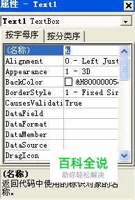 选中 Text1 文本框,在右侧的“属性”面板中找到(名称)选项,将该文本框的名称设置为 h(设置名称有助于后面编程时简化代码,也能防止编程出错。)同理将 Text2 文本框的名称设置为 m,将 Text3 文本框的名称设置为 s。