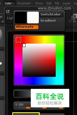 方法2: 在ZBrush菜单栏中点开Color界面,在调色器中选择纯白色。然后点击Fillobject按钮填充颜色。
