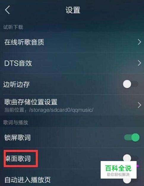 然后,我们需要在打开的设置窗口中,选择桌面歌词。