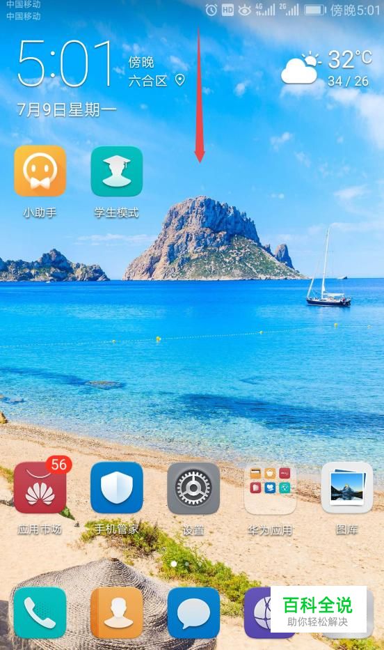 其次,我们还可以打开我们的手机,然后下拉屏幕上方的菜单栏;