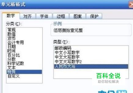 在弹出的单元格格式对话框中,在数字一栏中选择特殊,然后在右边类型栏选择人名币大写,确定即可。将身份证号码、手机号码转换为中文大写形式: