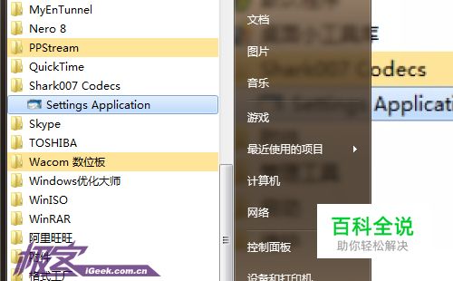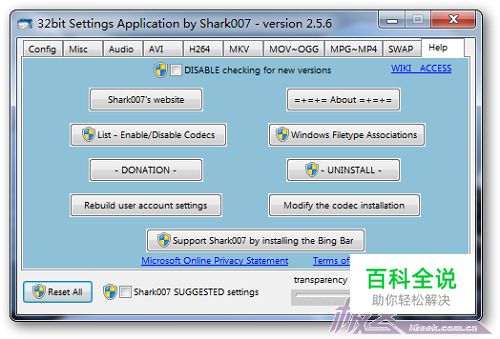 1.在开始菜单里运行 Win7Codecs 的 32 位配置程序 “Settings Application“。