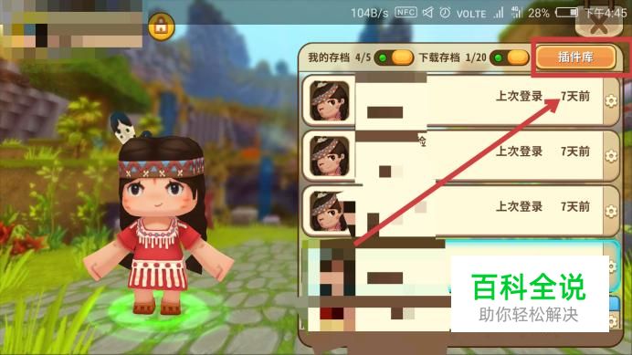 打开游戏,在界面的右上角找到“插件库”,点击进入。