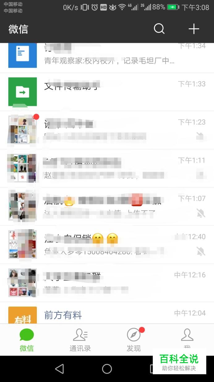 首先打开手机,点击微信,进入微信界面,如图所示