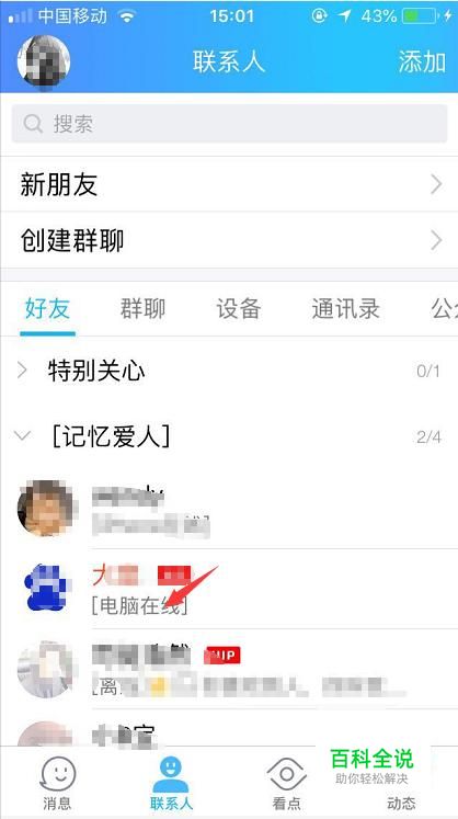 首先我们登录qq后在联系人页面找到想要备注的好友。