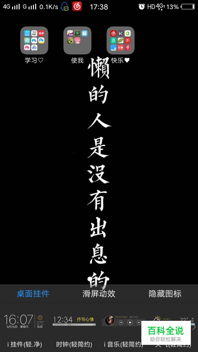 打开手机后,长按手机页面空白处,会出现以下界面。我们可以看到在手机底部,出现了一系列的菜单。