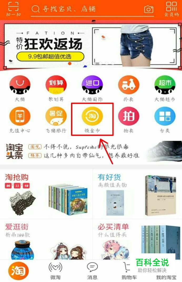 首先我们先登陆到淘宝界面,我们可以看到淘宝界面有一个淘金币,我们点击淘金币进入淘金币,在里面我们就可以看到很多获取方法和商品。