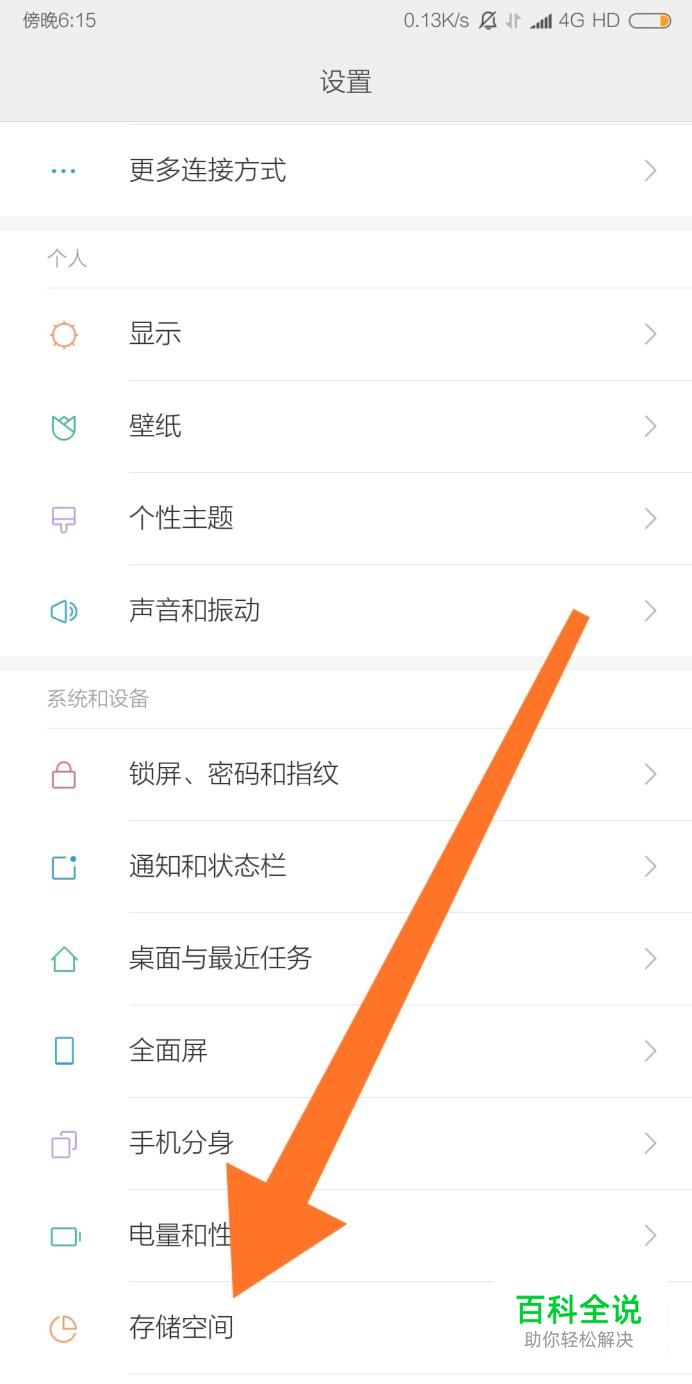 然后点击进入“存储空间”选项。
