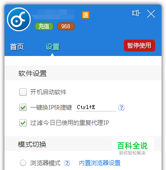 运行“代理蚂蚁”,切换到“设置”面板,选择“代理器模式”。