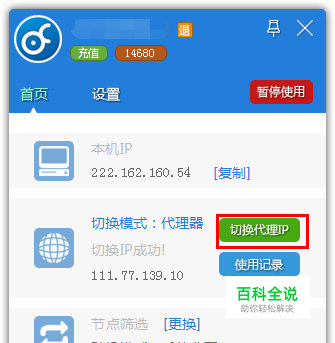 切换到“首页”。选择“切换代理IP”。