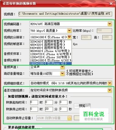 设置下载到手机的视频参数及使用更多高级功能 选择好符合自己手机的格式后,即可在下图中为下载到手机的视频格式进行参数设置了。在这里,一般保持软件的默认参数,导出后即可在手机上正常播放。软件的参数设置非常灵活,如果对视频有特别的要求,视频的编码器、比特率、分辨率等都可以根据自己的选择设置,在这里选择视频编码器为H264/AVC高清压缩器、同时调大视频的比特率,选择分辨率为1920*1080,还能导出1080P全高清视频。 另外,如果原视频声音太小,可以通过音量增益功能调整音量。而它的视频切割、添加/设置字幕、设置音轨功能都是现在很流行的功能,有需要的机油们不妨都试试。在这里,可体会到软件的功能强大。一切设置完毕后,点击“确认”按钮即可回到主界面进行极速转换!